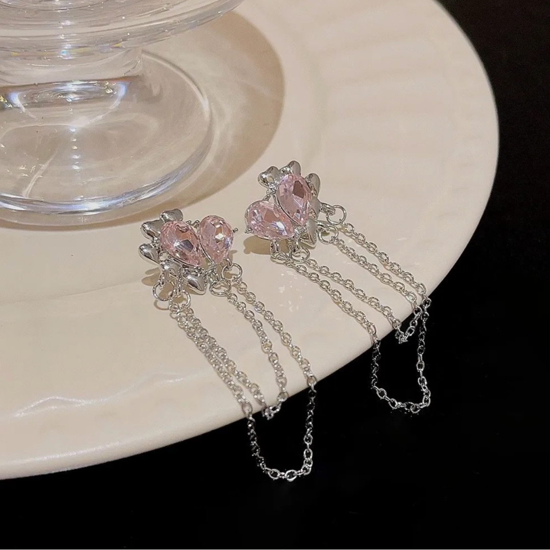 korean earrings, dreamy earrings, crystal earrings, long earrings, chain earrings, pink earrings, elegant earrings, aesthetic earrings, luxury earrings, silver earrings, statement earrings, romantic earrings, cute earrings, gift for her, pinterest earrings, classy earrings