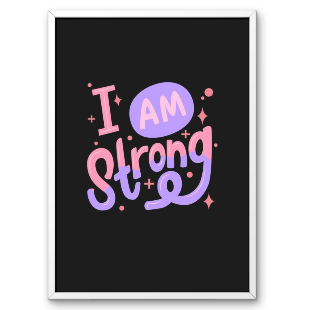 I Am Strong A4 Frame – Motivational Aesthetic Wall Art | Positive Affirmation Print | Girl Boss Room Decor