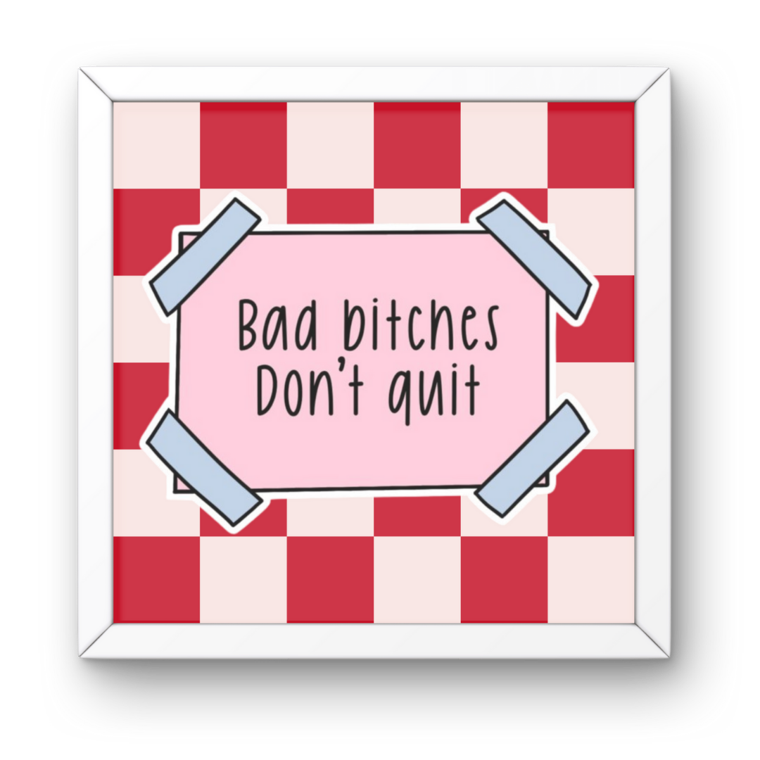 Whether it’s for your desk, bedroom wall, or as a gift to your fellow boss babe, this Pinterest Girlboss Frame is here to remind you — Bad bitches don’t quit. Bring some bold Pinterest girlboss vibes into your space with this empowering framed art. The striking red and blush pink checkerboard background paired with a playful pastel pink note and soft blue tape accents makes it the perfect blend of cute, sassy, and motivational.