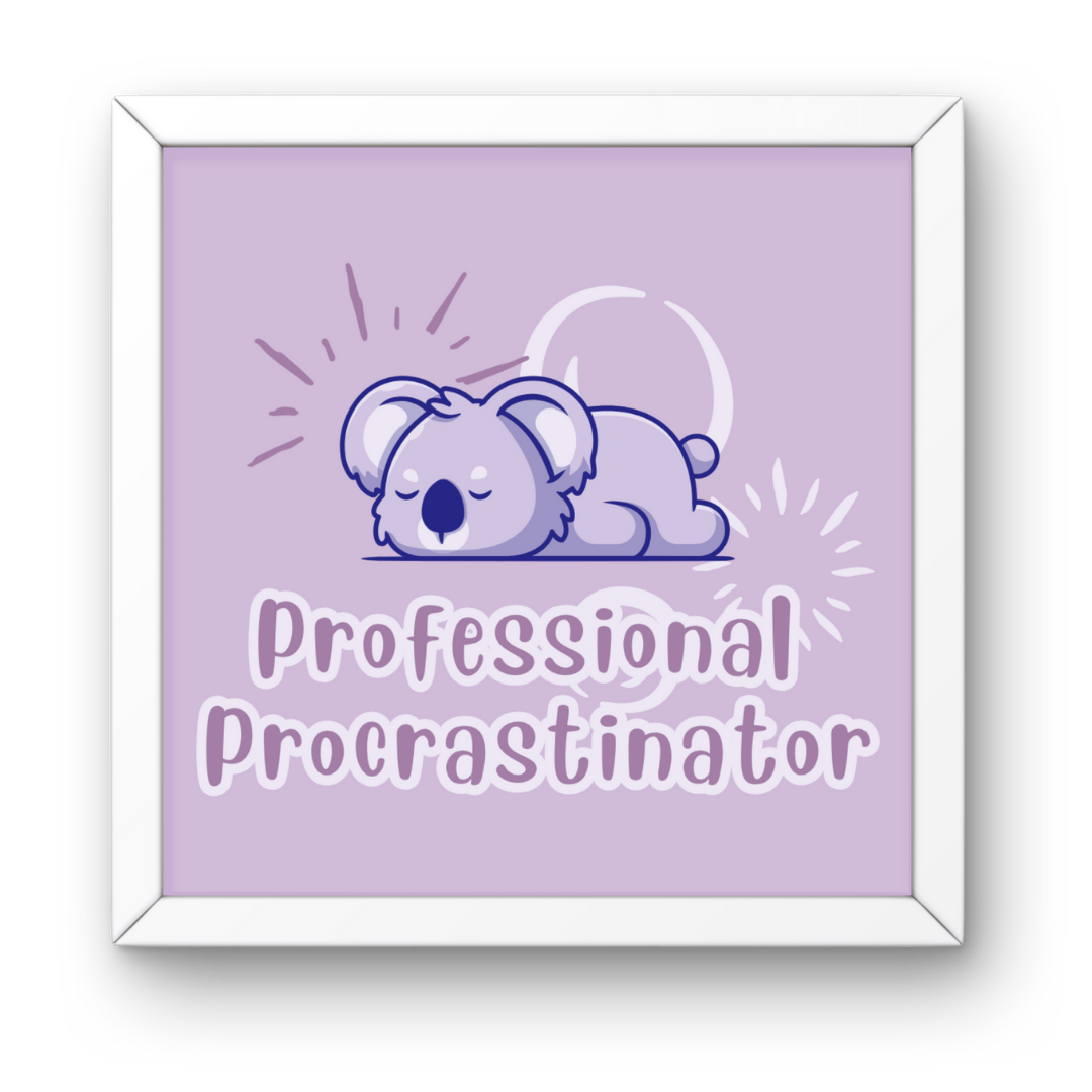 Pinterest Purple Koala Frame – Cute Aesthetic “Professional Procrastinator” Wall Art