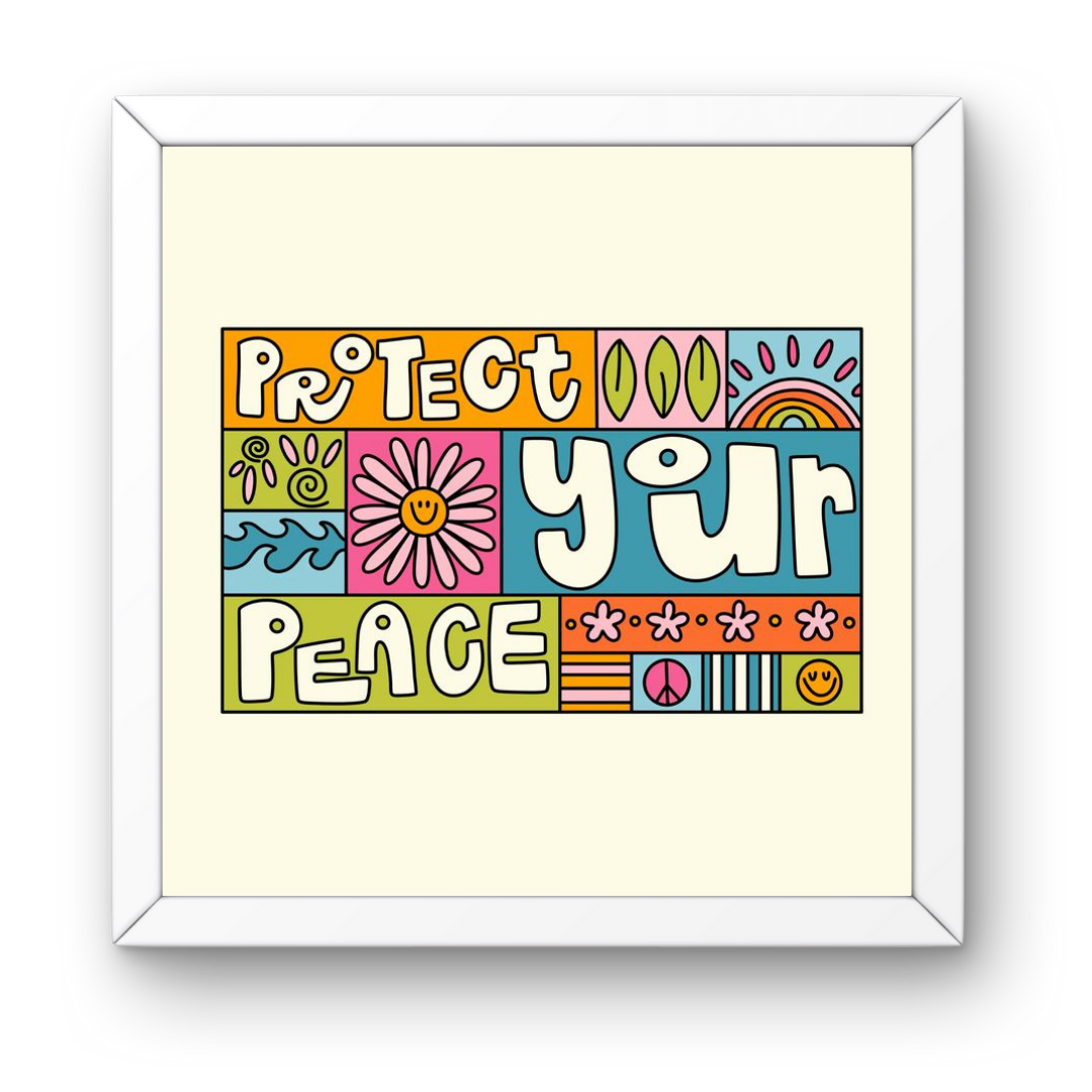 protect your peace frame, motivational wall art, aesthetic room decor, colorful quote frame, retro wall frame, square frame for wall, cute wall decor, boho wall art, positive quote frame, pinterest wall frame, happy art print, 90s aesthetic frame, self care wall decor