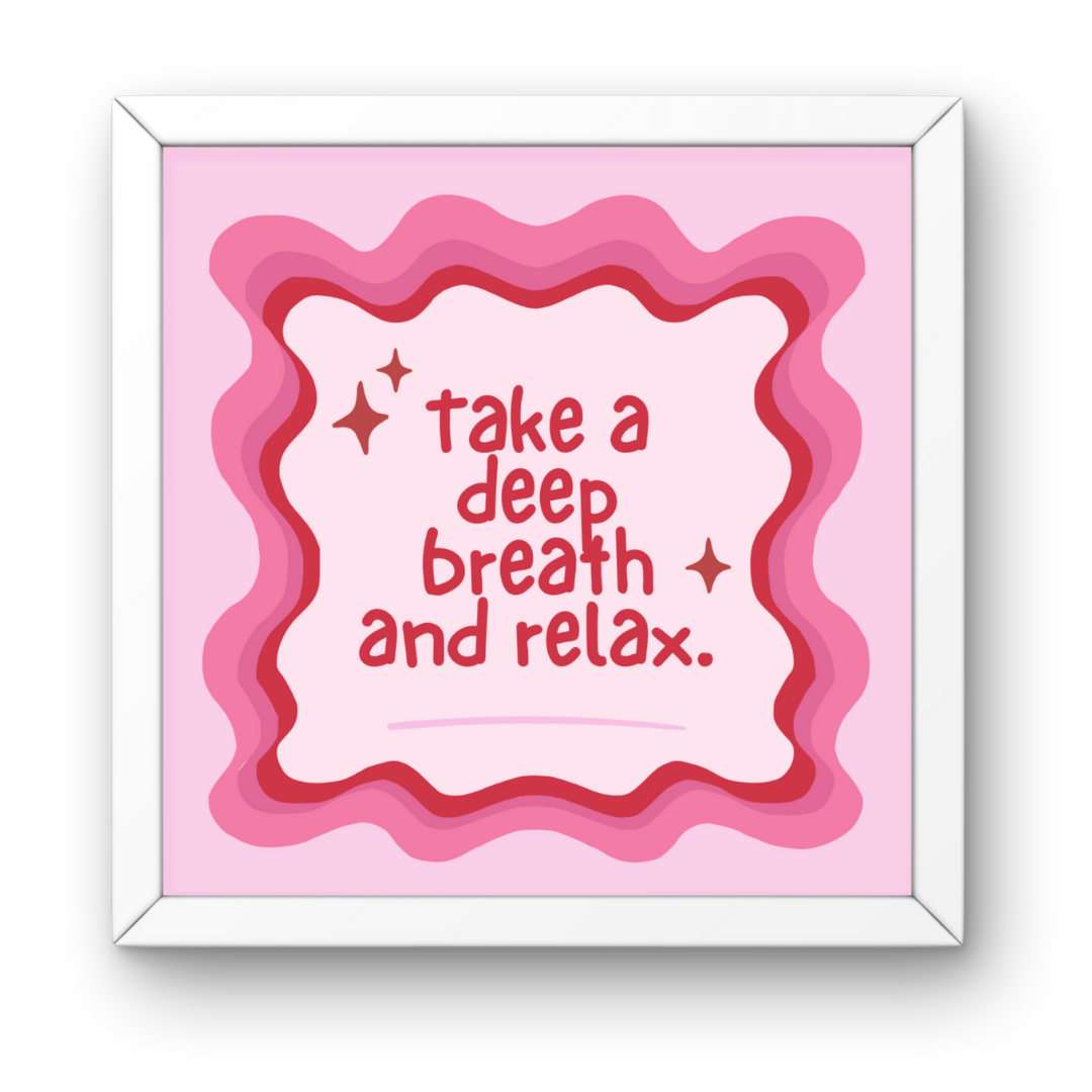 take a deep breath wall art, pink red motivational print, relaxation décor, mindful living artwork, Pinterest 5×5 frame, calming quote print, self-care wall décor, cozy room art, mental wellness print, positive affirmation artwork