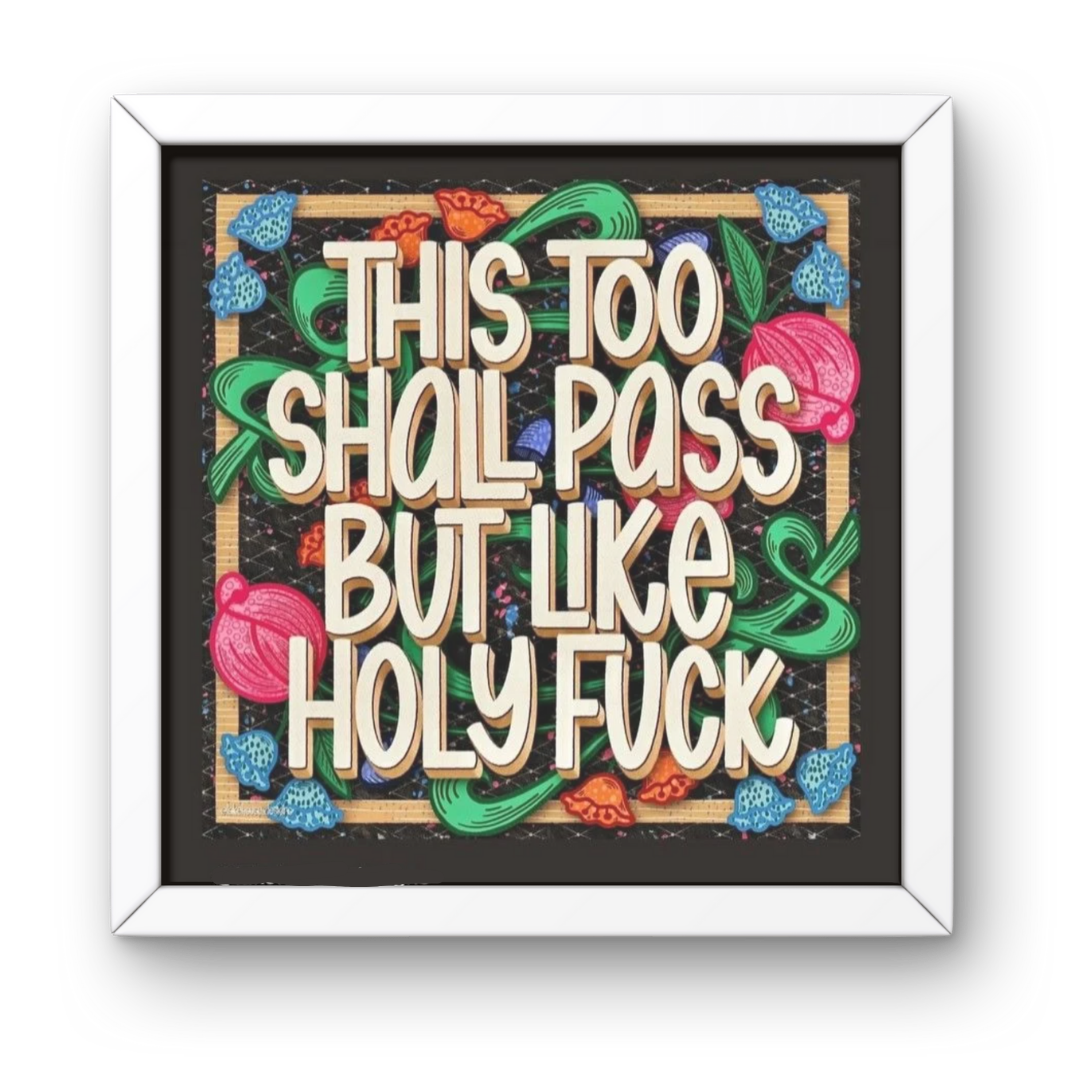 For those days when optimism just isn’t enough — this one gets it. 💥 The This Too Shall Pass But Like Square Frame perfectly sums up the chaos of adulting, healing, and hanging on by caffeine and sarcasm.